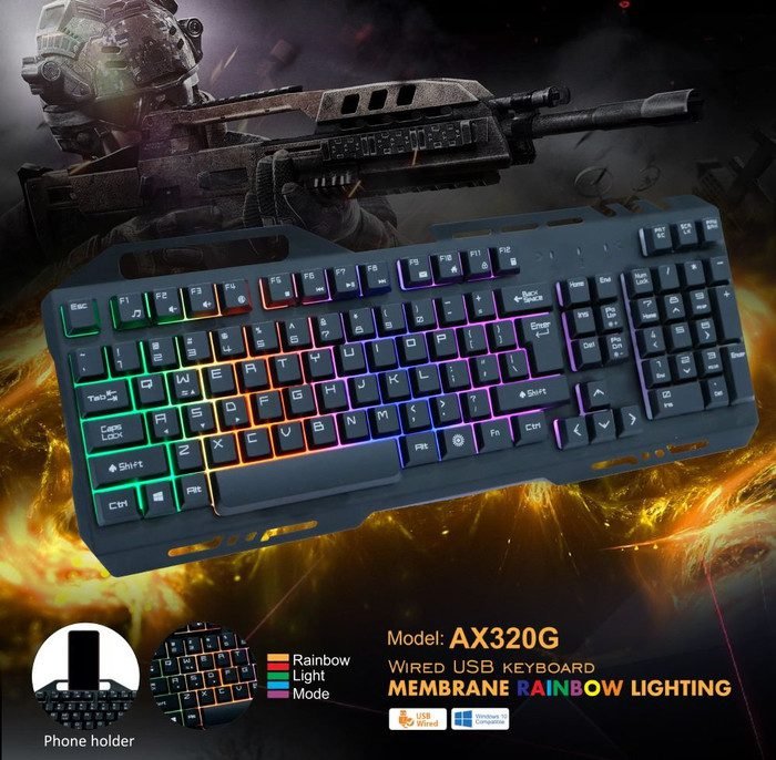 Keyboard Liva AX320G adalah sebuah keyboard gaming membran dengan fitur pencahayaan RGB/Rainbow. Keyboard ini dirancang untuk memberikan pengalaman bermain game yang fungsional dengan harga yang terjangkau.