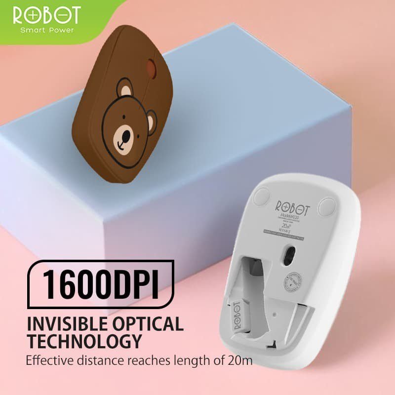 Mouse wireless Robot M220 Karakter adalah mouse nirkabel desain bergambar karakter dengan koneksi 2.4 GHz yang menawarkan desain tipis dan stylish, 3 tombol, serta teknologi optical dengan sensitivitas 1600 DPI. Mouse ini dilengkapi dengan fitur hemat energi, jangkauan nirkabel hingga 20 meter, dan bentuk scroll wheel yang unik (Cherry).