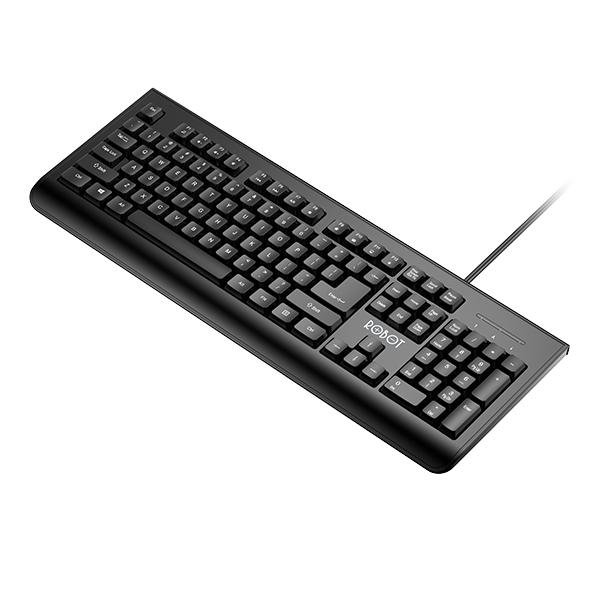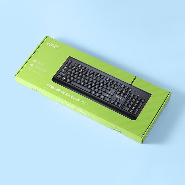 Keyboard Robot RK20 adalah keyboard berkabel dengan 104 tombol, desain ergonomis, dan daya tahan 10 juta kali klik. Fitur utamanya meliputi 12 tombol multimedia gabungan, desain anti-percikan dengan empat lubang drainase, dan cangkang plastik berkualitas tinggi.